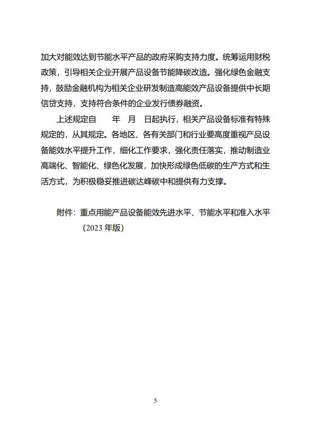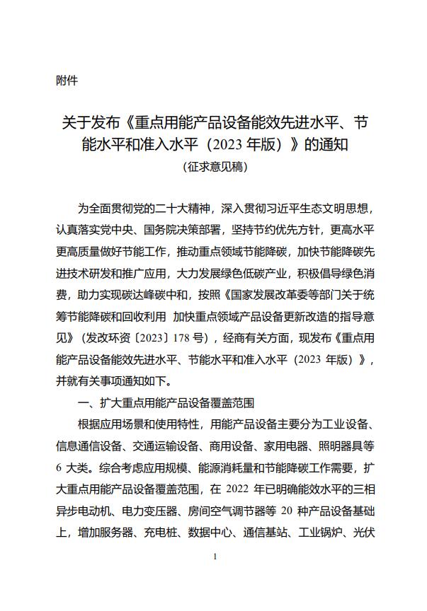 附件:關(guān)于發(fā)布《重點用能產(chǎn)品設(shè)備能效先進水平、節(jié)能水平和準入水平(2023年版)》的通知(征求意見稿)