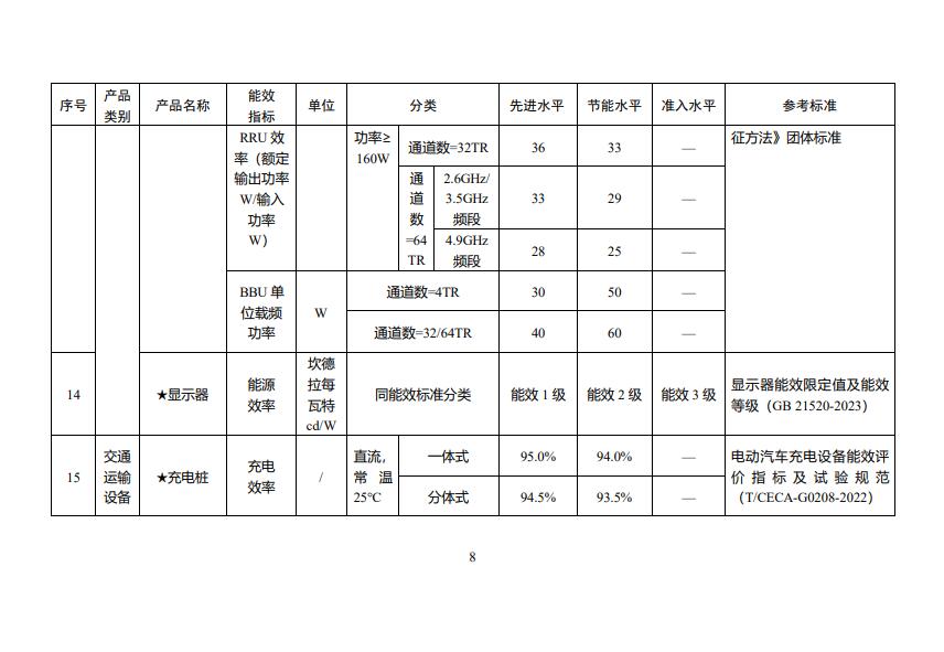 征求意見稿提出,擴大重點用能產(chǎn)品設(shè)備覆蓋范圍。綜合考慮應(yīng)用規(guī)模、能源消耗量和節(jié)能降碳工作需要,擴大重點用能產(chǎn)品設(shè)備覆蓋范圍,在2022年已明確能效水平的20種產(chǎn)品設(shè)備基礎(chǔ)上,增加服務(wù)器、充電樁、數(shù)據(jù)中心、通信基站、工業(yè)鍋爐、光伏組件等22種產(chǎn)品設(shè)備,基本實現(xiàn)重點用能產(chǎn)品設(shè)備全覆蓋,進一步支撐重點領(lǐng)域節(jié)能降碳。