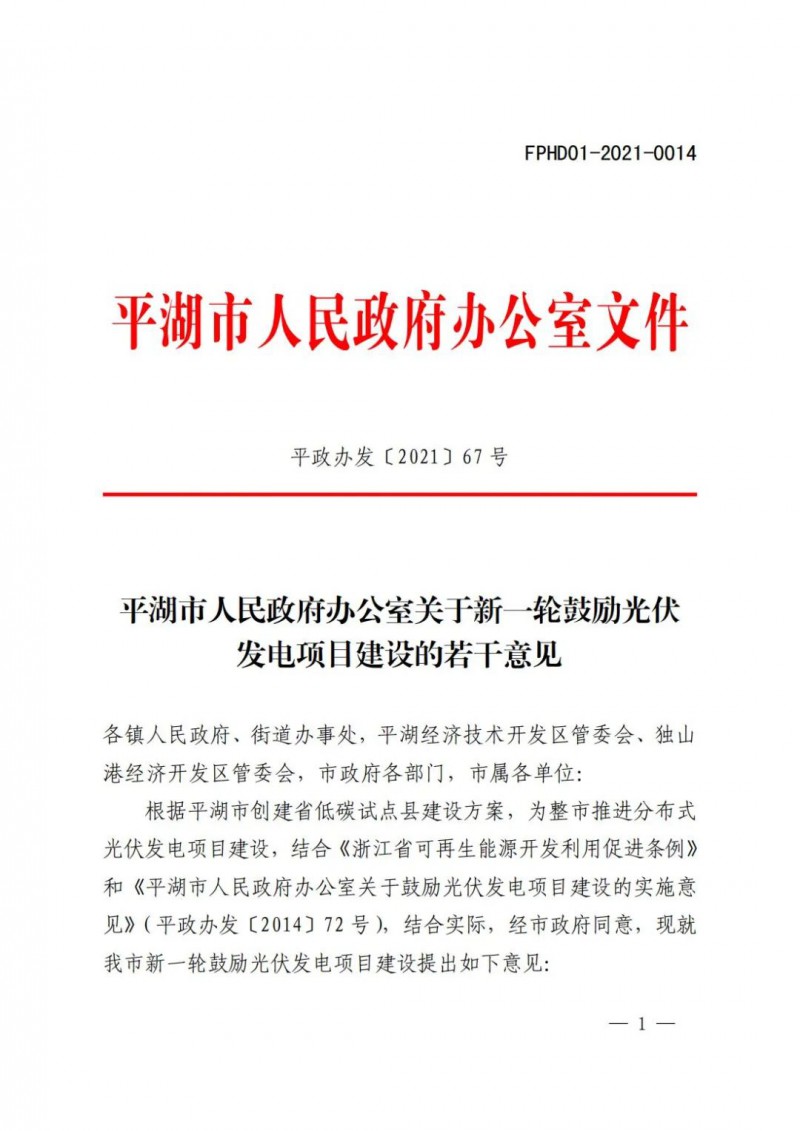 1月11日,平湖市人民政府發(fā)布了關(guān)于新一輪鼓勵(lì)光伏發(fā)電項(xiàng)目建設(shè)的若干意見。明確到“十四五”末,平湖市光伏發(fā)電裝機(jī)容量達(dá)到600兆瓦以上,實(shí)際新增200兆瓦以上,年平均新增裝機(jī)容量在40兆瓦以上。