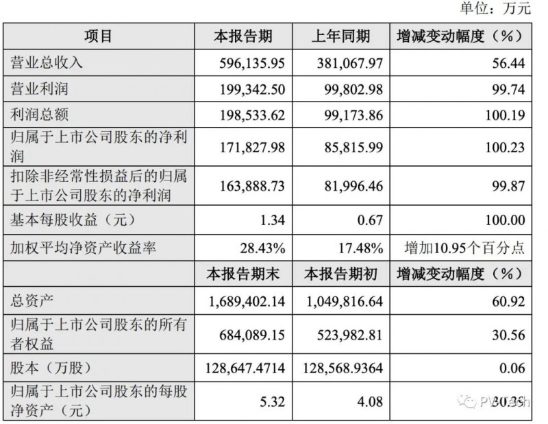 3月8日晚間,晶盛機(jī)電(300316.SZ)發(fā)布2021年度業(yè)績快報(bào),報(bào)告期內(nèi),公司營業(yè)總收入約59.61億元,同比增加56.44%;歸屬于上市公司股東的凈利潤盈利約17.18億元,同比增加100.23%;基本每股收益盈利1.34元,同比增加100%。