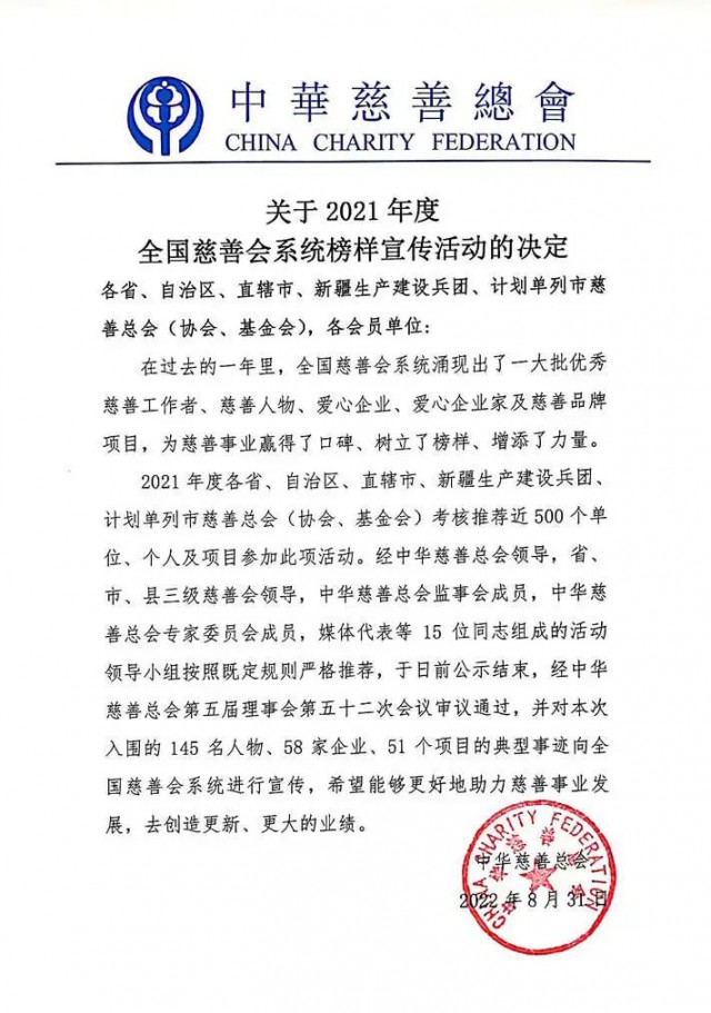 近日,中華慈善總會(huì)公布2021年度全國(guó)慈善會(huì)系統(tǒng)榜樣宣傳活動(dòng)評(píng)選結(jié)果。晶澳科技董事長(zhǎng)靳保芳榮獲全國(guó)慈善會(huì)系統(tǒng)“愛心企業(yè)家”榮譽(yù)稱號(hào)。