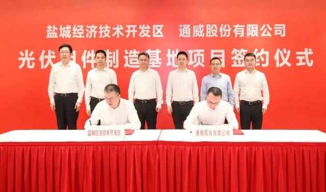 9月22日,通威股份發(fā)布公告,公司擬與鹽城經(jīng)開區(qū)管委會簽署高效光伏組件制造基地項目投資協(xié)議書,擬投建25GW高效光伏組件制造基地項目,建設(shè)周期為24個月,預(yù)計固定資產(chǎn)投資額約為40億元。