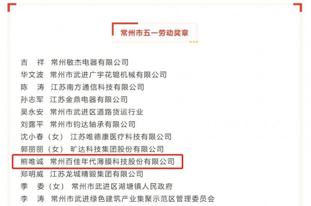 致敬勞動(dòng)者,奮進(jìn)新征程。勞動(dòng)節(jié)前夕,常州市舉行慶?!拔逡弧眹?guó)際勞動(dòng)節(jié)大會(huì),對(duì)為我市經(jīng)濟(jì)發(fā)展作出貢獻(xiàn)的先進(jìn)集體和先進(jìn)個(gè)人進(jìn)行表彰,動(dòng)員和號(hào)召全市廣大職工以先進(jìn)為標(biāo)桿,大力弘揚(yáng)勞模精神勞動(dòng)精神工匠精神,為建設(shè)“兩湖”創(chuàng)新區(qū)、打造“新能源之都”、決勝“萬(wàn)億之城”作出新的更大貢獻(xiàn)。會(huì)上,百佳年代新材料研究院研發(fā)總監(jiān)熊唯誠(chéng)博士榮獲“常州市五一勞動(dòng)獎(jiǎng)?wù)隆睒s譽(yù)。