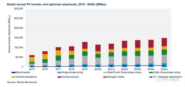 與2020年相比,2021年全球光伏逆變器出貨量增長了22%,即40250MWac(兆瓦,交流電),達到225386MWac。這主要是由歐洲、印度和拉丁美洲市場的強勁增長推動的,為了實現(xiàn)脫碳目標,這些國家和地區(qū)的政府提升了支持力度。