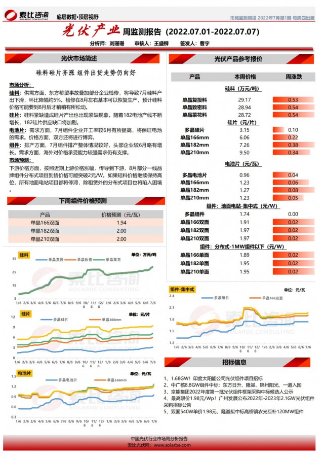 光伏產(chǎn)業(yè) 周監(jiān)測(cè)報(bào)告