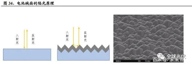 由于硅片在切割過程中表面會(huì)產(chǎn)生大量的油污,金屬污染和機(jī)械損傷,因此 要對(duì)硅片進(jìn)行酸洗(多晶)或者堿洗(單晶),利用各向同行和各向異性原理對(duì) 硅片表面進(jìn)行腐蝕,去除硅片表面機(jī)械損傷層;清除表面油污和金屬雜質(zhì),形成 潔凈表面;形成起伏不平的絨面,使入射光在表面進(jìn)行多次反射和折射,延長(zhǎng)光 程,減少光學(xué)損失,金剛線切割硅片經(jīng)過清洗制絨后表面反射率可從50%降低至 15%以下。