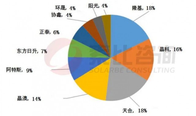 圖:2022年10月中國光伏組件生產(chǎn)企業(yè)產(chǎn)出份額