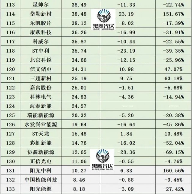 黑鷹團(tuán)隊(duì)統(tǒng)計(jì)發(fā)現(xiàn),相比2022年1月1日市值,截止12月23日(本周五)收盤,145家光伏上市公司總市值33999億元,若剔除十家上市不足一年的上市企業(yè),光伏總市值較年初下降了9634億元,“蒸發(fā)”近萬億,降幅達(dá)23.32%。