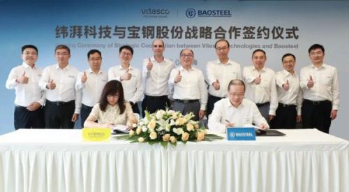 緯湃科技亞太區(qū)采購(gòu)及供應(yīng)商質(zhì)量管理部總監(jiān)陳珺與寶鋼股份總經(jīng)理助理、營(yíng)銷中心總經(jīng)理彭俊作為雙方代表簽署戰(zhàn)略合作協(xié)議。緯湃科技中國(guó)區(qū)總裁顧睿華(Gregoire Cuny)以及寶鋼股份黨委常委兼副總經(jīng)理胡宏等雙方有關(guān)領(lǐng)導(dǎo)出席并見(jiàn)證了這一里程碑時(shí)刻。