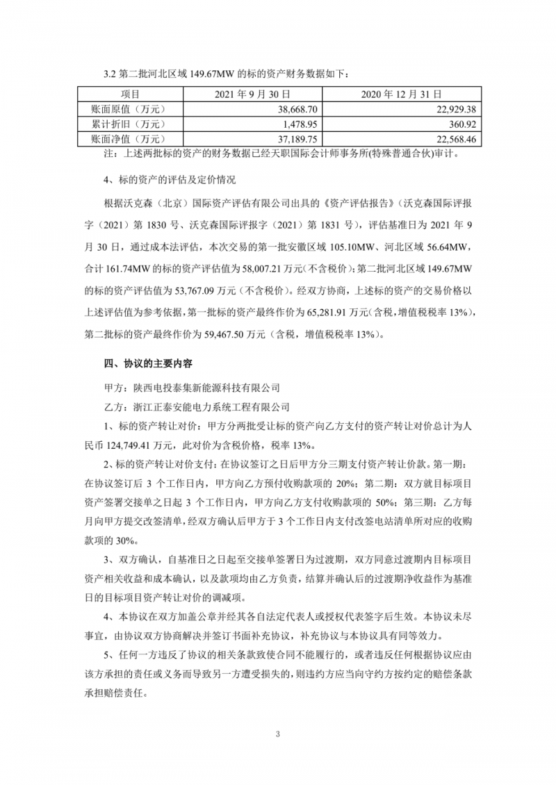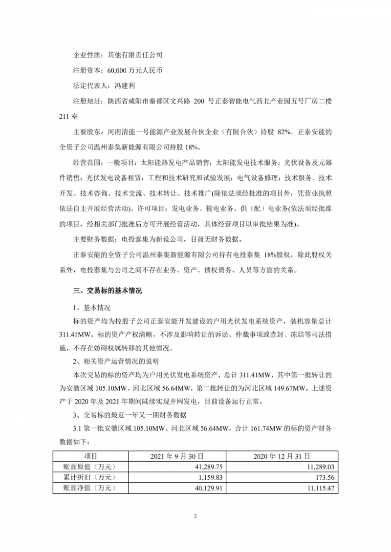 1月25日,正泰電器發(fā)布公告稱,將其所持有的河北及安徽區(qū)域總計(jì)311.41MW戶用光伏發(fā)電系統(tǒng)資產(chǎn)分兩批轉(zhuǎn)讓給陜西電投泰集新能源科技有限公司,交易對(duì)價(jià)總計(jì)為124749.41萬元。