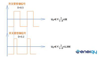 從①式我們可以看到,輸出電壓U0>E,即Boost實現(xiàn)了其抬升電壓的作用。這時,只要給開關(guān)管S一個合適的占空比控制信號,便可實現(xiàn)輸出電壓的調(diào)整,并得到想要的電壓值,從而實現(xiàn)拓寬輸出電壓的目的。