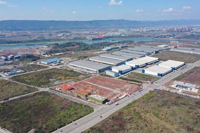 圖為重慶東港汽車電子產業(yè)園項目建設施工現場(無人機照片)。新華社記者 唐奕 攝
