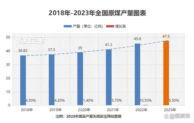 2023年1-4月全國能源生產(chǎn)情況:全國生產(chǎn)原煤15.27億噸,同比增長(zhǎng)4.8%,煤炭寶初步預(yù)計(jì)2023年我國煤炭總產(chǎn)量為47.5億噸左右。
