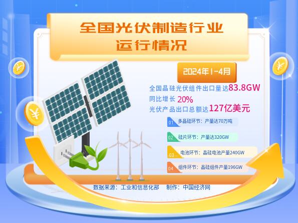 我國光伏產(chǎn)業(yè)高位運行 1-4月產(chǎn)品出口額達127億美元