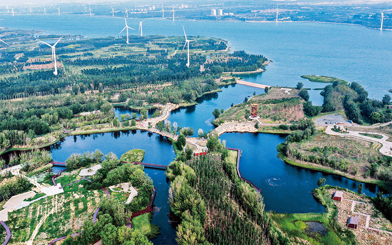 近年來(lái),河北省張家口市大力推進(jìn)清潔能源開(kāi)發(fā)利用,推動(dòng)新能源項(xiàng)目建設(shè),助力綠色低碳發(fā)展。圖為張家口市懷來(lái)縣官?gòu)d水庫(kù)國(guó)家濕地公園景區(qū)矗立的風(fēng)電風(fēng)機(jī)。 張家口市委宣傳部供圖 武殿森/攝