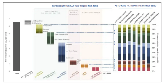 根據(jù)拜登政府所制定的計劃,要在2050年前實現(xiàn)凈零排放,需要通過在大部分經(jīng)濟領域中改用清潔能源——電力實現(xiàn)運行,包括汽車、建筑和工業(yè)流程;此外,還需要提高能源效率并擴大使用從大氣中提取二氧化碳的技術。