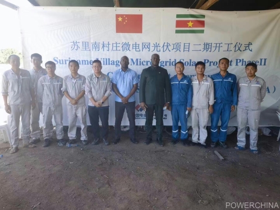 蘇里南時間11月13日,江西電建公司承建的蘇里南村莊微電網(wǎng)光伏項(xiàng)目(二期)開工儀式在項(xiàng)目現(xiàn)場隆重舉行。蘇里南共和國副總統(tǒng)布林斯韋克、自然資源部部長戴維阿比亞莫夫等人出席儀式。
