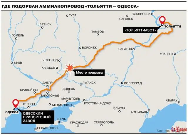 據(jù)央視新聞,俄羅斯國防部發(fā)言人科納申科夫7日稱,烏克蘭破壞分子5日晚炸毀了位于哈爾科夫州的陶里亞蒂-敖德薩液氨輸送管道。