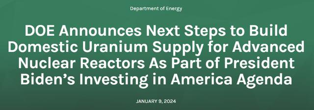 日內(nèi)全球鈾礦商的股票大漲,因美國政府周二(1月9日)表示正在征集投標以促進其國內(nèi)的核燃料生產(chǎn)。