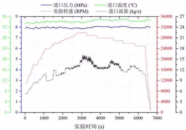 科研人員對(duì)測試平臺(tái)進(jìn)行了改進(jìn),優(yōu)化了壓縮機(jī)實(shí)驗(yàn)循環(huán)系統(tǒng),使得實(shí)驗(yàn)進(jìn)口狀態(tài)始終穩(wěn)定在設(shè)計(jì)參數(shù)(8MPa,35℃)附近;改進(jìn)了壓縮機(jī)進(jìn)口狀態(tài)測量方法,采用間接測量法,極大地提高了壓縮機(jī)進(jìn)口溫度測量精度及響應(yīng)特性,進(jìn)口溫度間接測量誤差小于0.025℃,遠(yuǎn)小于現(xiàn)有A級(jí)溫度傳感器測量誤差。