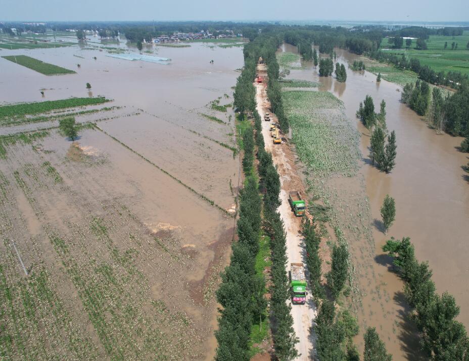 截止16時,已拋填土石方2200余方,封堵決口25米,口寬剩余15米。