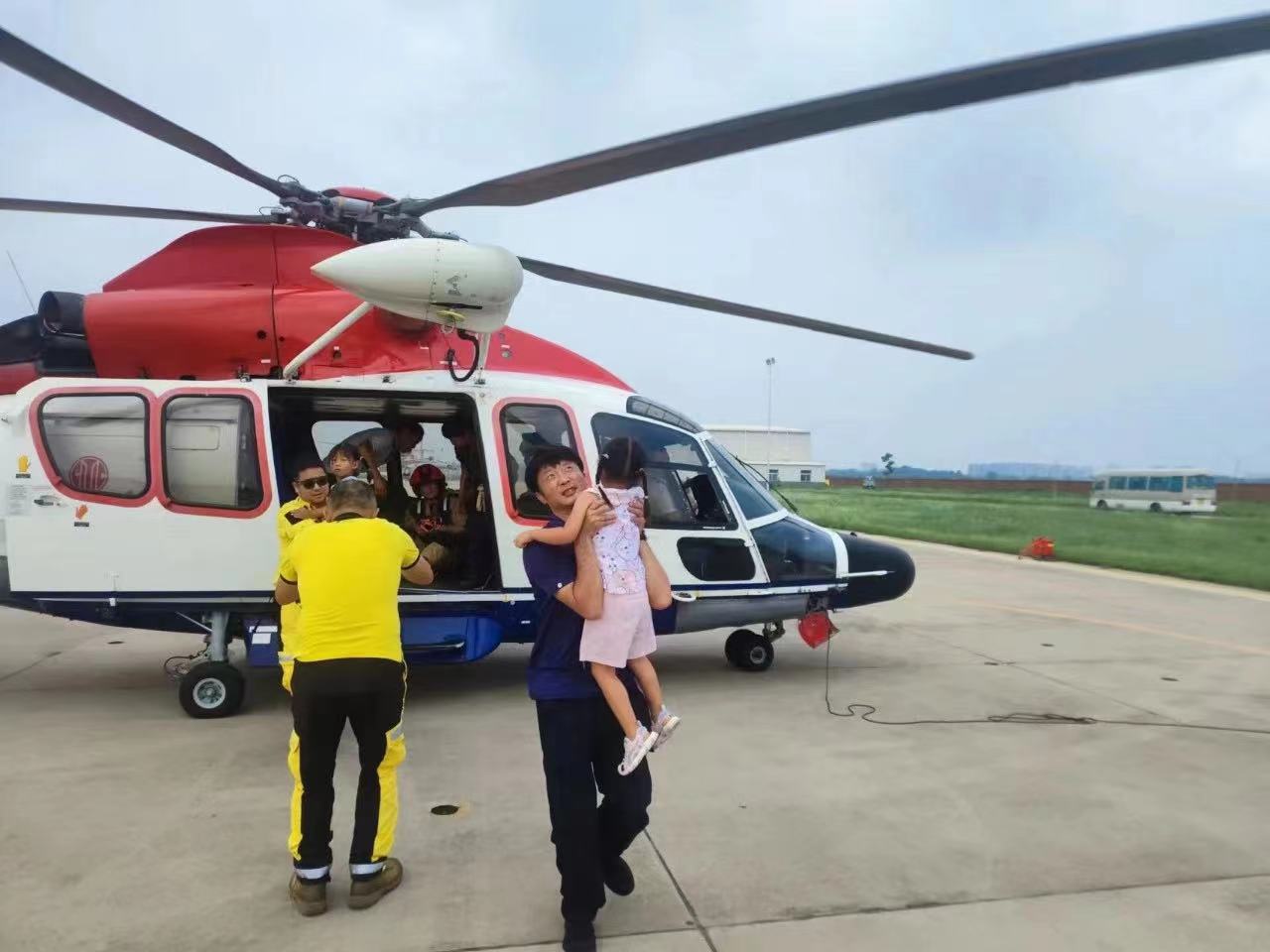 這架派出的直升機用于渤海油田生產(chǎn)倒班,于8月2日5時15分從天津塘沽起飛,6時8分抵達災區(qū)備降點,7時45分投入救援搶險任務。按照搜救路線,直升機在被洪水圍困的城鎮(zhèn)和村莊十公里范圍內(nèi)的低空反復盤旋,細致搜索搜救目標,盡一切可能搜救失聯(lián)、被困人員。截至2日17時,該機組救援人員已高效完成5班緊急救援任務和1班物資空投任務,成功營救39名被困人員,包括2名嬰兒、8名兒童、5名老人,這6名搜救人員均為渤海油田實戰(zhàn)實練的專業(yè)人員。