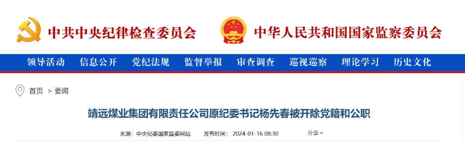 中央紀(jì)委國(guó)家監(jiān)委網(wǎng)站1月16日消息,據(jù)甘肅省紀(jì)委監(jiān)委消息:日前,經(jīng)甘肅省委批準(zhǔn),甘肅省紀(jì)委監(jiān)委對(duì)靖遠(yuǎn)煤業(yè)集團(tuán)有限責(zé)任公司原紀(jì)委書(shū)記楊先春嚴(yán)重違紀(jì)違法問(wèn)題進(jìn)行了立案審查調(diào)查。