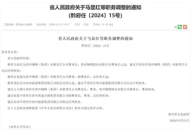 建議張胤不再擔(dān)任貴州高速公路集團(tuán)有限公司副董事長(zhǎng)、董事、總經(jīng)理職務(wù);