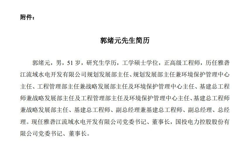 郭緒元任國投電力控股股份有限公司(以下簡(jiǎn)稱“國投電力”)董事長。