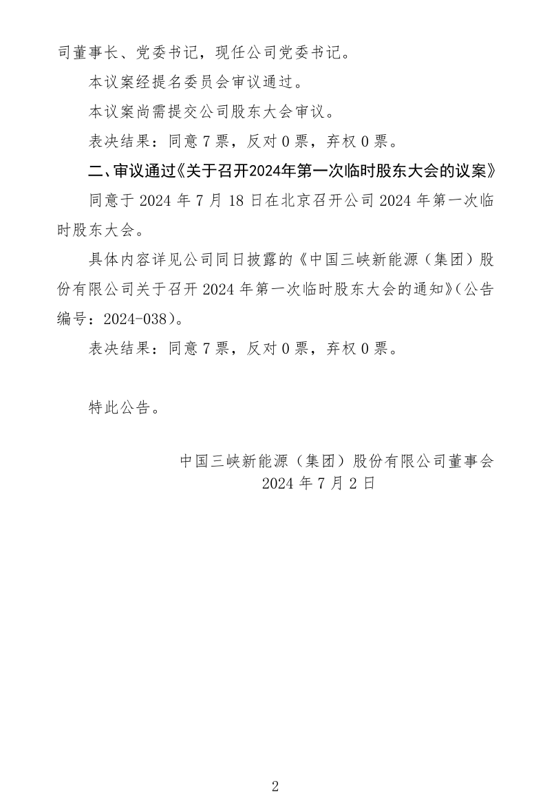 7月2日,三峽能源發(fā)布公告稱,公司第二屆董事會第二十四次會議于7月2日召開。會議審議通過《關(guān)于補(bǔ)選公司董事的議案》, 同意補(bǔ)選朱承軍先生為公司董事。