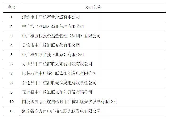 二、經(jīng)檢索查詢發(fā)現(xiàn),目前有深圳市中廣核產(chǎn)業(yè)控股有限公司、中廣核(深圳)商業(yè)保理有限公司等11家公司(附表)冒名使用“中廣核”字號(hào)或商標(biāo),對(duì)我集團(tuán)品牌造成嚴(yán)重侵權(quán)。