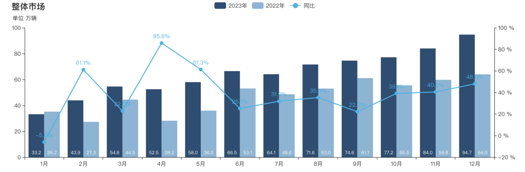 剛剛過去的2023年,軌跡明顯改變,增速放緩,新能源汽車產(chǎn)銷分別完成958.7萬輛和949.5萬輛,同比分別增長(zhǎng)35.8%、37.9%。