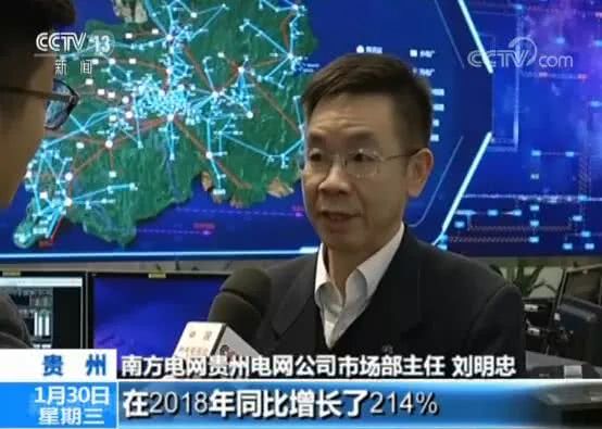 “南方電網(wǎng)貴州電網(wǎng)公司市場部主任 劉明忠:(2018年用電量)主要是兩個特點,一個是我們貴州省傳統(tǒng)的十大高載能行業(yè),其中的有一些行業(yè)還在穩(wěn)步增長,另外值得關(guān)注的是我們貴州省一個新興產(chǎn)業(yè),出現(xiàn)了迅猛的發(fā)展,以大數(shù)據(jù)為例,大數(shù)據(jù)的用電量的話,在2018年同比增長了214%,那這個增長的速度是非??斓?。”