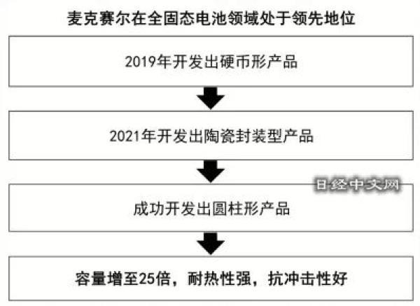 1月6日,據(jù)《日經(jīng)中文網(wǎng)》報(bào)道,日本大型電池企業(yè)麥克賽爾(Maxell)開發(fā)出了圓柱形全固態(tài)電池,其容量達(dá)到200毫安時(shí),是傳統(tǒng)的陶瓷封裝型(方形)容量的25倍。新電池具有耐熱性強(qiáng)、壽命長(zhǎng)的特點(diǎn),而且抗沖擊性好,被認(rèn)為可以當(dāng)作主電源使用。