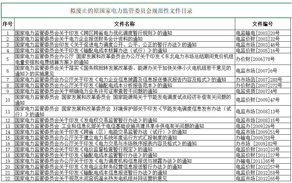 國(guó)家能源局綜合司關(guān)于廢止原國(guó)家電力監(jiān)管委員會(huì)部分規(guī)范性文件征求意見的公告