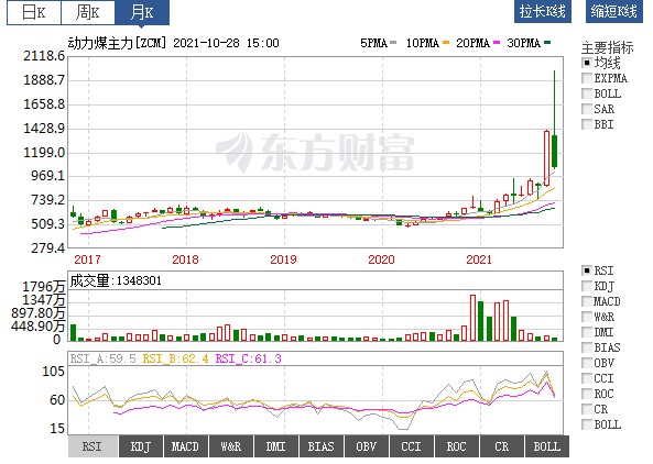 由K線圖上可知,煤價(jià)在今年4月突破了長達(dá)若干年的大箱體,開始了瘋狂的上升之旅。從月線上看,如今一根長上影線避雷針,從技術(shù)上來講,死翹翹了。