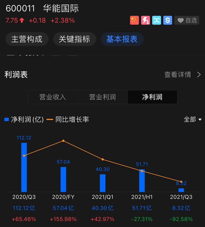 以華能國際為例,預(yù)測全年業(yè)績有可能是虧損。