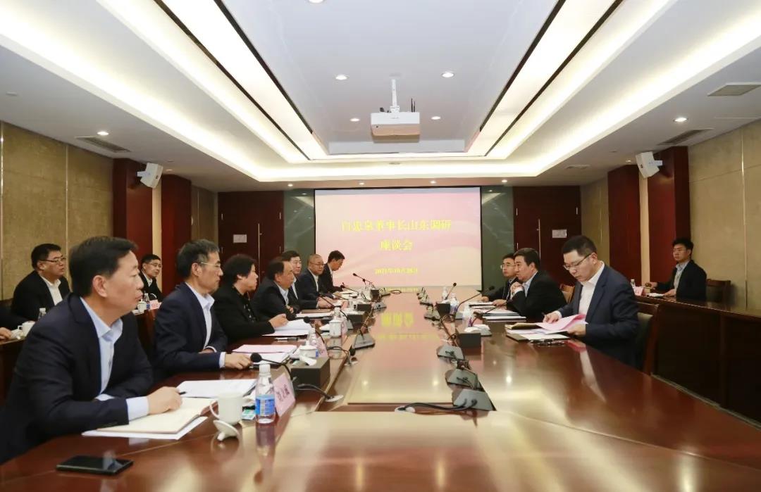 2021年10月28日,集團公司黨委書記、董事長白忠泉到山東電工電氣調研。圖為白忠泉與山東電工電氣領導班子召開專題座談會。
