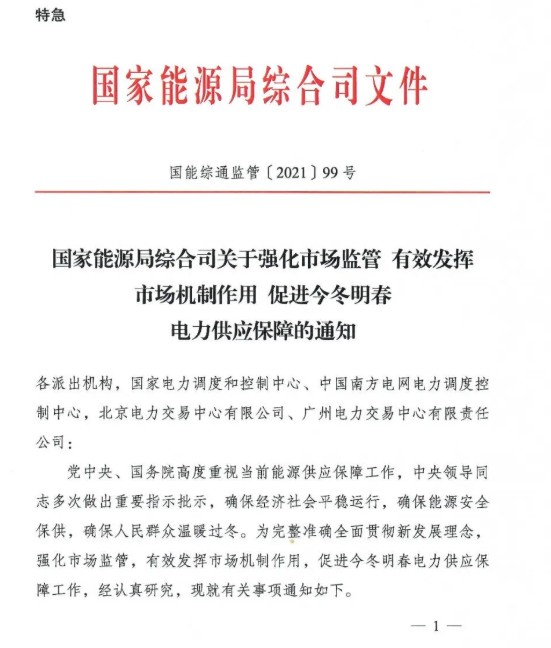 ? 近日,國(guó)家能源局綜合司發(fā)布特急通知,要求強(qiáng)化市場(chǎng)監(jiān)管、發(fā)揮市場(chǎng)機(jī)制、促進(jìn)電力供應(yīng)保障。