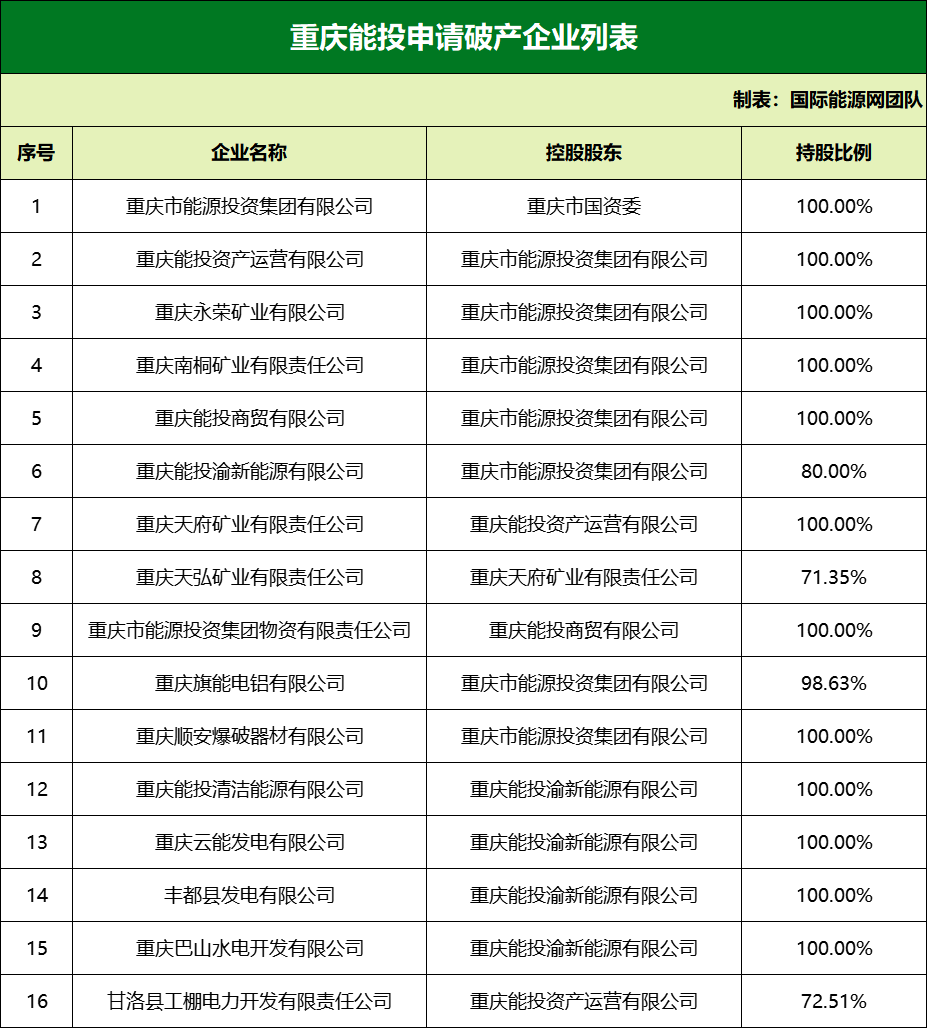 本網(wǎng)訊 4月11日,據(jù)重慶破產(chǎn)法庭消息,重慶市能源投資集團(tuán)有限公司(以下稱“重慶能投”)等16家國有企業(yè)以已具備破產(chǎn)原因但具有重整價值及可行性為由,分別向重慶市第五中級人民法院申請破產(chǎn)重整,并同時提出預(yù)重整申請。目前,法院對上述企業(yè)的申請正在進(jìn)一步審查中。