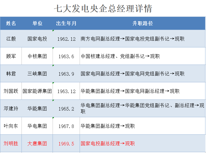 7位發(fā)電央企總經(jīng)理的詳細檔案(按年齡排序)