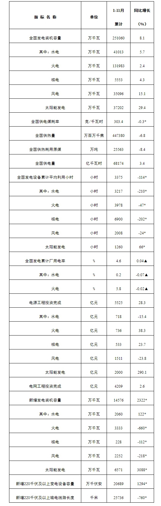 12月16日,國家能源局發(fā)布1-11月份全國電力工業(yè)統(tǒng)計(jì)數(shù)據(jù)。