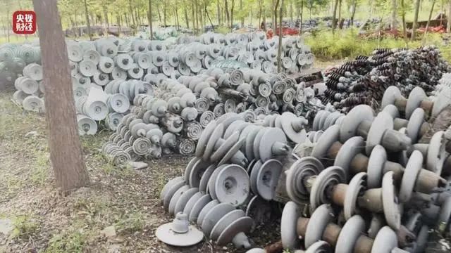 絕緣子是電力線路安全運(yùn)營(yíng)的重要保障之一,起著非常關(guān)鍵的絕緣作用。在河北河間市西舊館村,樹(shù)林里道路兩旁堆放著一堆堆絕緣子,金屬表面有明顯被腐蝕的痕跡,有的甚至銹跡斑斑。
