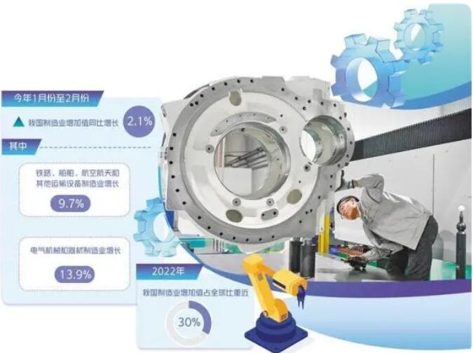 國家統(tǒng)計局最新數(shù)據(jù)顯示,今年1月份至2月份,我國制造業(yè)增加值同比增長2.1%。其中,化學(xué)原料和化學(xué)制品制造業(yè)增長7.8%,鐵路、船舶、航空航天和其他運(yùn)輸設(shè)備制造業(yè)增長9.7%,電氣機(jī)械和器材制造業(yè)增長13.9%,表現(xiàn)亮眼。