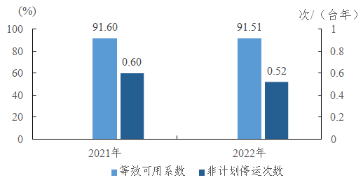 圖2 2021—2022年燃煤機(jī)組主要運(yùn)行可靠性指標(biāo)