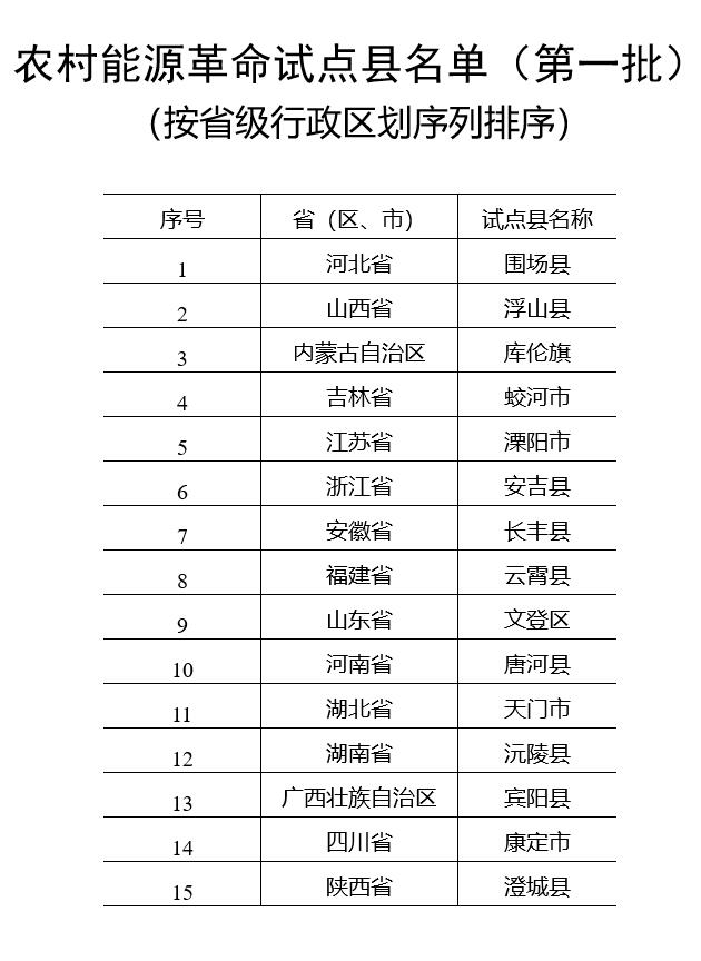 附件:農(nóng)村能源革命試點縣名單(第一批)