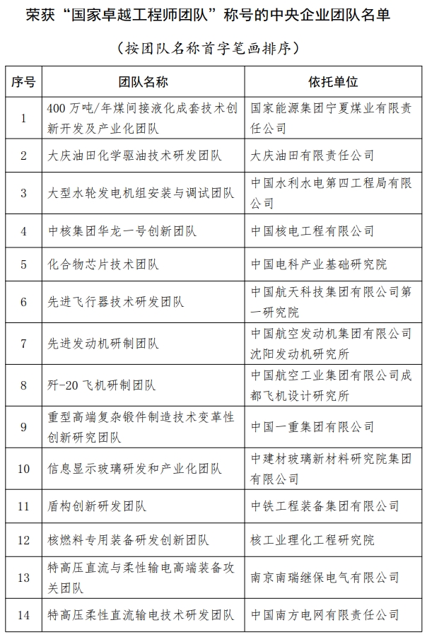 中央企業(yè)共有王軍等29名工程科技人才榮獲“國家卓越工程師”稱號,400萬噸/年煤間接液化成套技術(shù)創(chuàng)新開發(fā)及產(chǎn)業(yè)化團(tuán)隊等20個團(tuán)隊榮獲“國家卓越工程師團(tuán)隊”稱號。