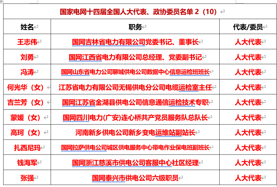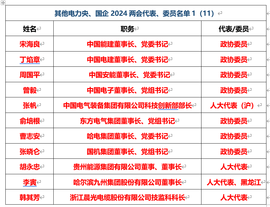 (1)孟振平南方電網(wǎng)董事長(zhǎng)、黨組書(shū)記(政協(xié)委員)