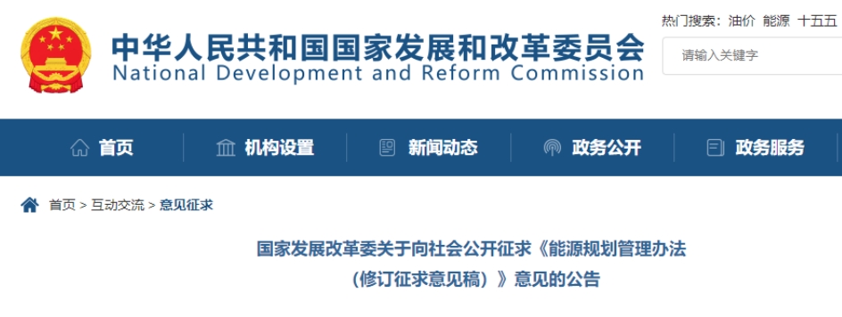 為貫徹落實(shí)黨的二十屆三中全會(huì)精神,進(jìn)一步健全能源規(guī)劃制度體系,按照《中華人民共和國(guó)能源法》有關(guān)規(guī)定,國(guó)家能源局修訂形成了《能源規(guī)劃管理辦法(修訂征求意見(jiàn)稿)》,現(xiàn)向社會(huì)公開征求意見(jiàn)。公眾可通過(guò)以下途徑和方式提出反饋意見(jiàn):