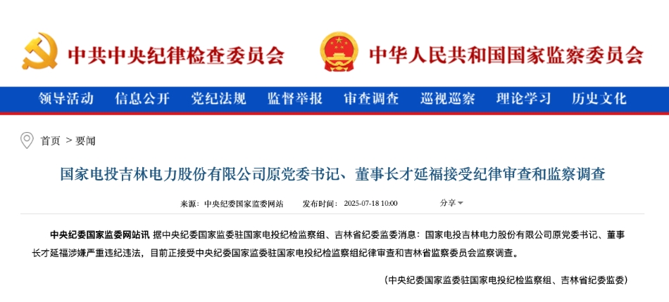 今年以來,國家電投反腐持續(xù)深入,已有多名干部被查,包括:國家電投集團湖北電力有限公司總經(jīng)理、黨委副書記鄧勇,國家電力投資集團有限公司戰(zhàn)略規(guī)劃與發(fā)展部副總監(jiān)曾武,國家電投上海能源科技發(fā)展有限公司黨委委員、副總經(jīng)理張寶軍等。